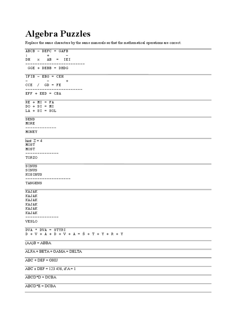 algebra puzzlesworksheets